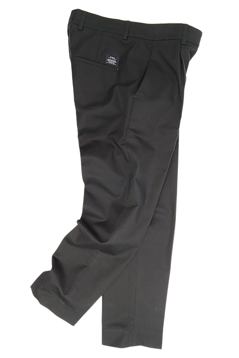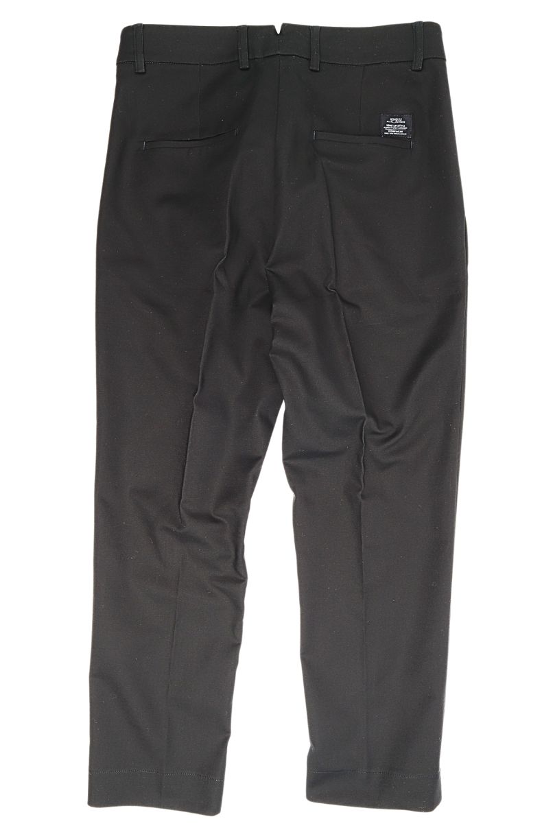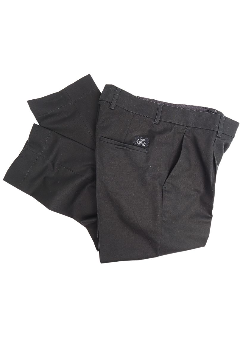 Calça de Sarja Preta, confeccionada com Tecido Premuim, modelagem ampla, com pregas e bolsos faca no frontal dando um caimento e acabamento de Alfaiataria. Bolsos traseiros embutidos.