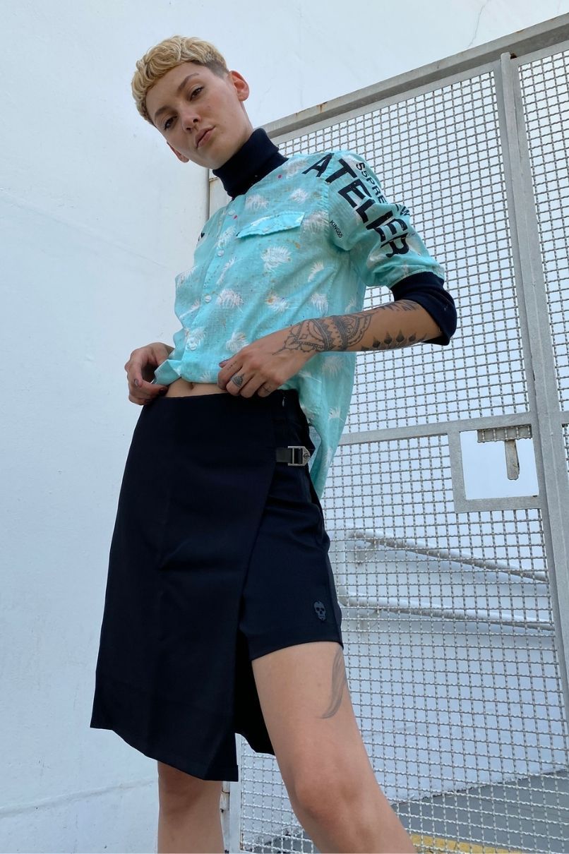 Bermuda Saia Square Alfaiataria Preta, um Classico da Marca, modelagem alfaiataria, embutida em uma Saia Kilt com aberturas laterais