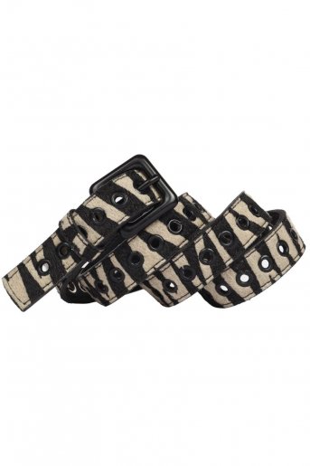 Cinto Zebra 4CM, confeccionado em material sintético, com fivela em metal e furado em toda a sua extensão, permitindo usá-lo tanto na altura da cintura até o quadril. Esse cinto traz consigo a atitude autêntica King55, criando um visual único com muita personalidade. 100% free de Crueldade Animal