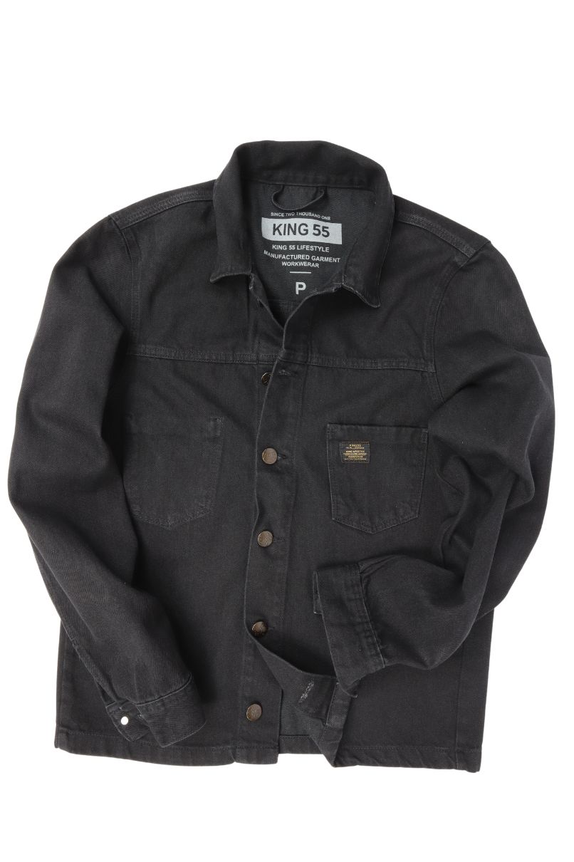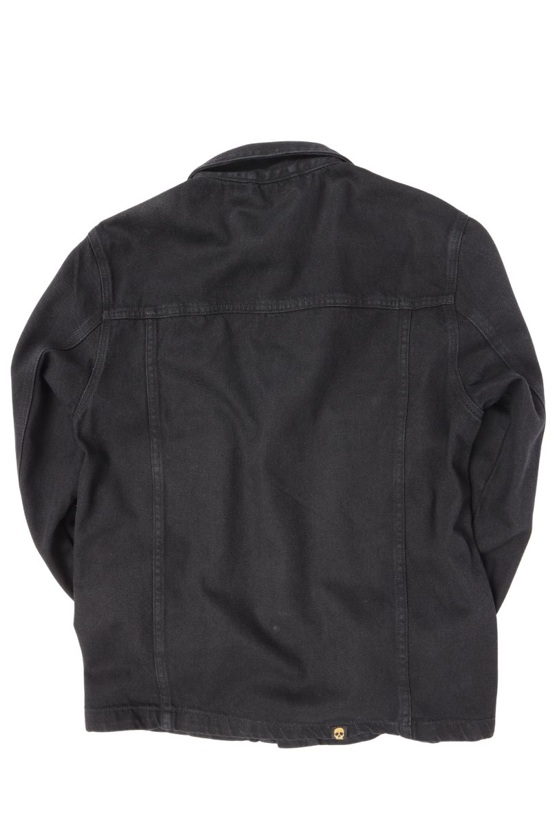 Jaqueta de Sarja Preta Basica, jaqueta em sarja, modelagem reta com um bolso frontal e um interno do lado esquerdo. Fechamento em botões metálicos personalizados.