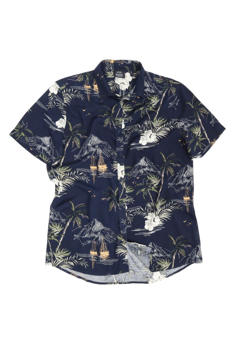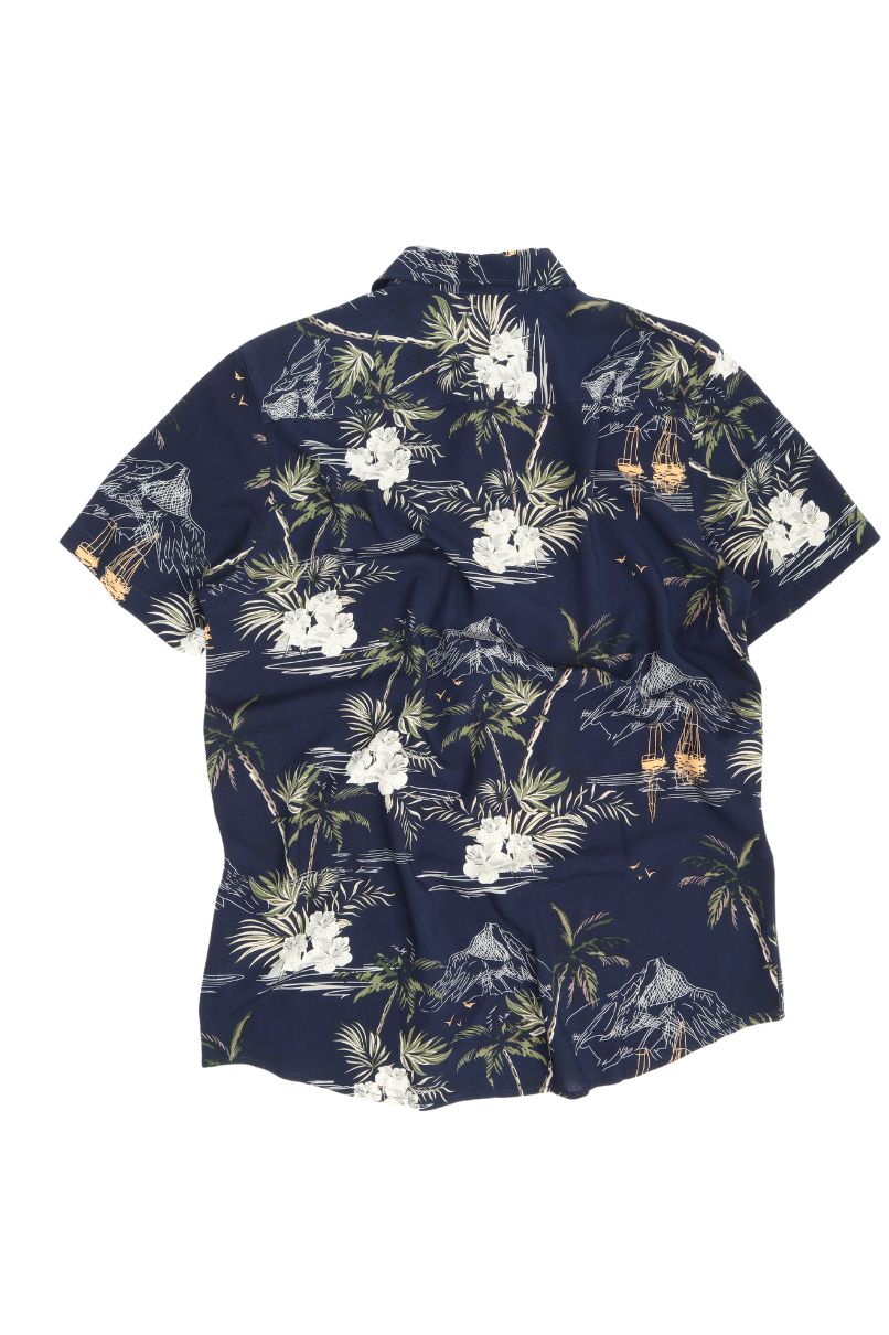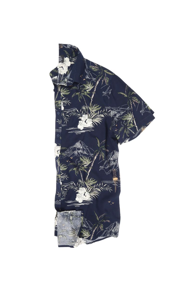 Camisa Fiji de Viscose Manga Curta Estampada: Possui uma modelagem reta, colarinho curto, fechamento com botões e barra arredondada.