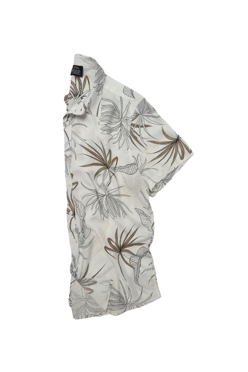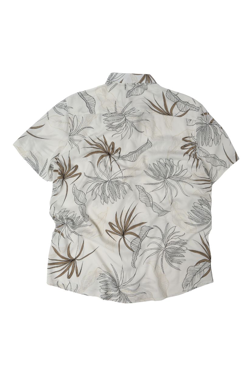 Camisa Moorea de Viscose Manga Curta Estampada: Possui uma modelagem reta, colarinho curto, fechamento com botões e barra arredondada.