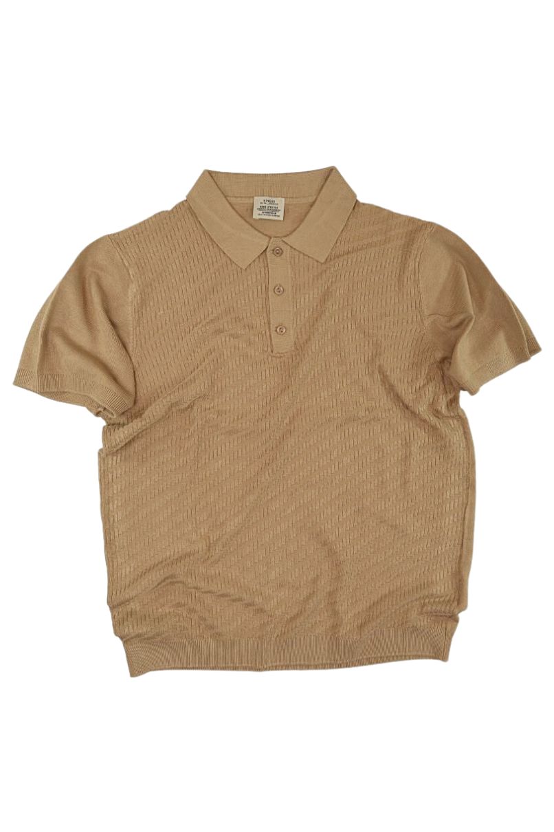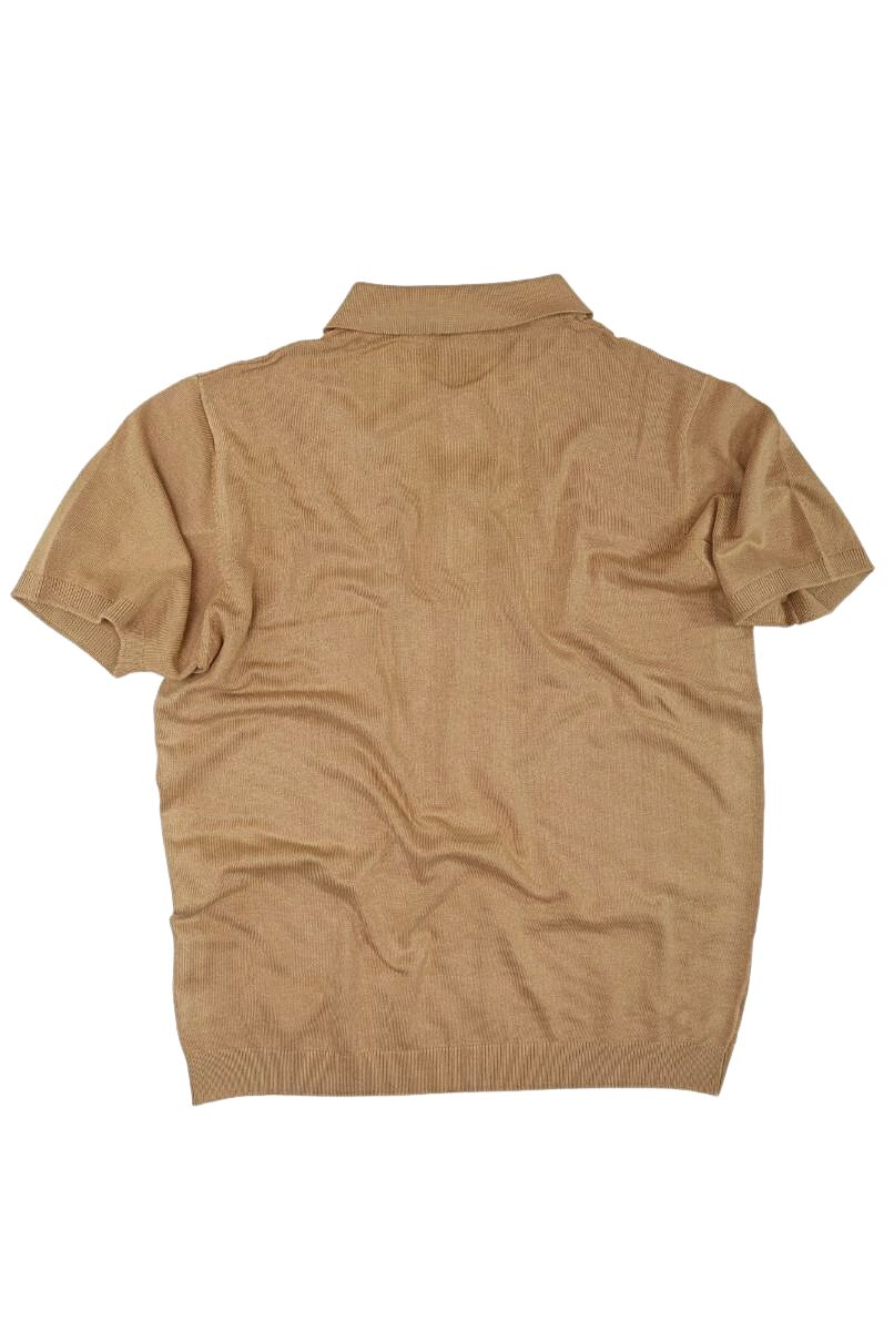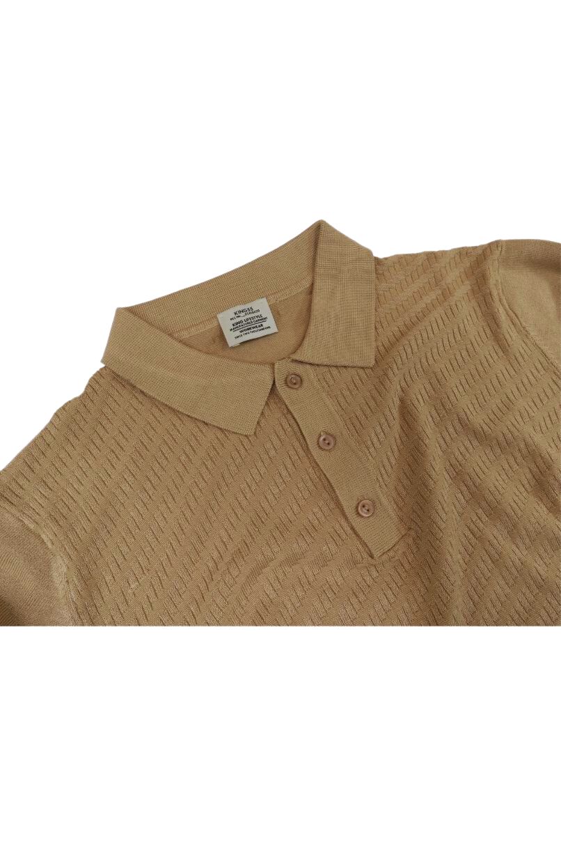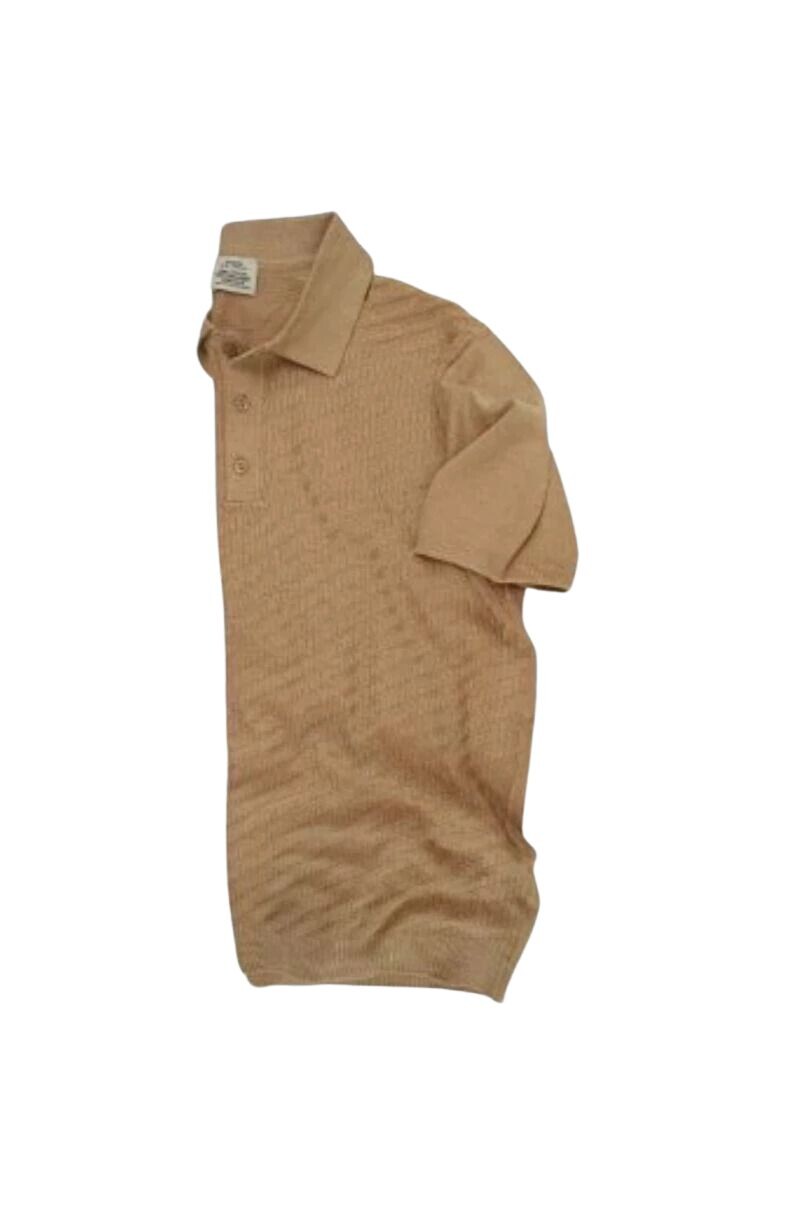 Camiseta Polo Tricot Kaki, Manga Curta. Estrutura em tricô. Possui um trabalhado no ponto palito na parte fontal e nas costas ponto liso, dispõe de 3 botões frontais.