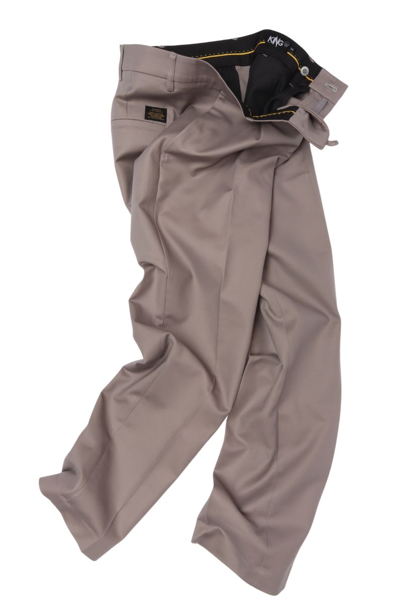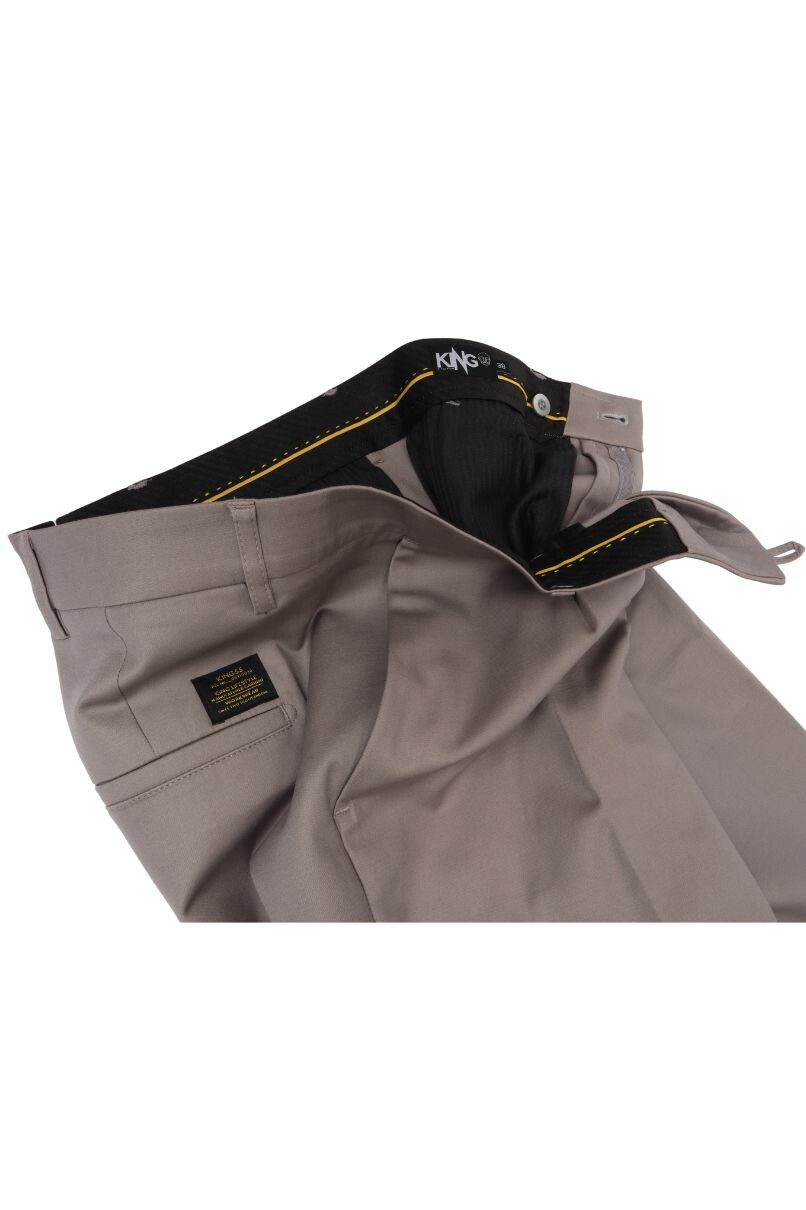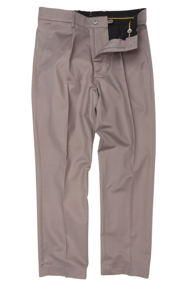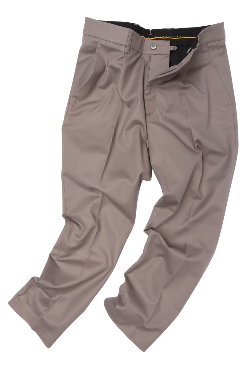 Calça de Sarja Cinza, confeccionada com Tecido Premuim, modelagem ampla, com pregas e bolsos faca no frontal dando um caimento e acabamento de Alfaiataria. Bolsos traseiros embutidos.