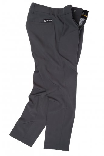 Cintura média alta com cós estruturado e passantes.