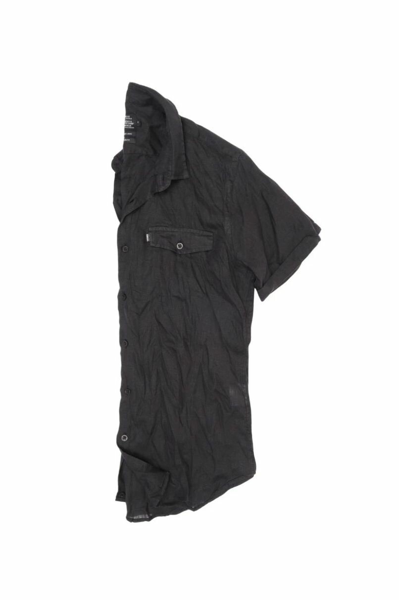 CAMISA DE LINHO MANGA CURTA PRETO