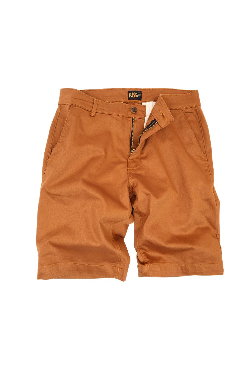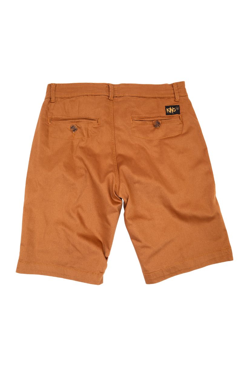 Bermuda de sarja Conhaque, cintura intermediária, bolsos faca, bolsos traseiros embutido com fechamento em botão. Fechamento em zíper.