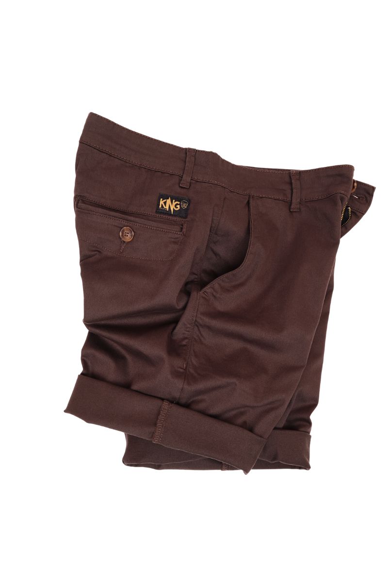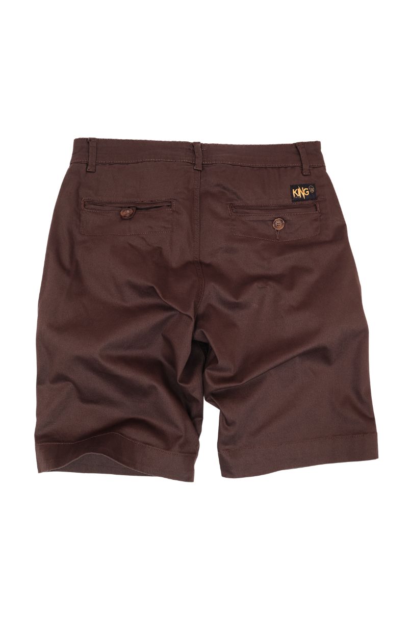 Bermuda de sarja Marrom Café, cintura intermediária, bolsos faca, bolsos traseiros embutido com fechamento em botão. Fechamento em zíper.