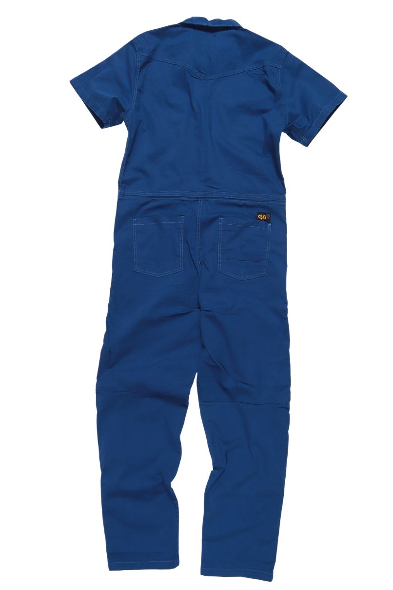 Macacão Estilo Operário Unissex em Sarja Azul Navy, com fechamento frontal em botão, bolsos frontais e traseiros.